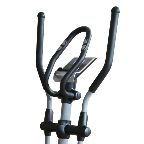 Среднегабаритный эллиптический тренажер E8711HP для домашнего использования с бесшумной магнитной системой нагружения с электроприводом оснащен датчиками измерения сердечного ритма, расположенными на рукоятках. Тренажер также имеет держатель для планшета и транспортировочные ролики для легкого перемещения после тренировки.
