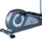 Среднегабаритный эллиптический тренажер для домашнего использования с бесшумной магнитной системой нагружения с электроприводом. Оснащен датчиками измерения сердечного ритма, расположенными на рукоятках. Тренажер также имеет держатель для планшета и транспортировочные ролики для легкого перемещения после тренировки. Запатентованная система двустороннего вращение маховика придает дополнительную плавность и более правильный ход педалей при занятии.