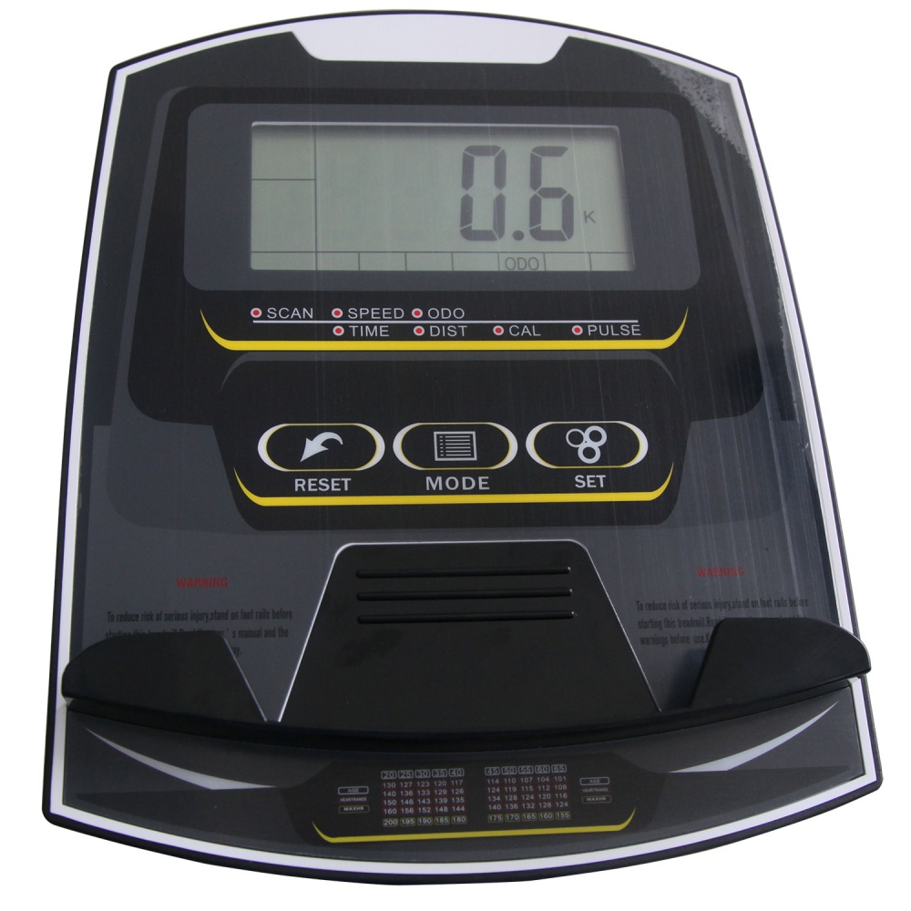 Среднегабаритный эллиптический тренажер для домашнего использования. Тренажер имеет магнитную систему нагружения, с механической регулировкой нагрузки. 8 фиксируемых положений нагрузки с помощью удобной ручки на стойке тренажера. На руле расположены 2 датчика пульса с отображением показаний на дисплее консоли. Как правило, встроенные на тренажерах датчики имеют погрешность измерения. Поэтому для более точного определения частоты сердечных сокращений (ЧСС) рекомендуем использовать нагрудный кардиопояс с часами - монитором, модель DFC W117 (опция, приобретается отдельно).