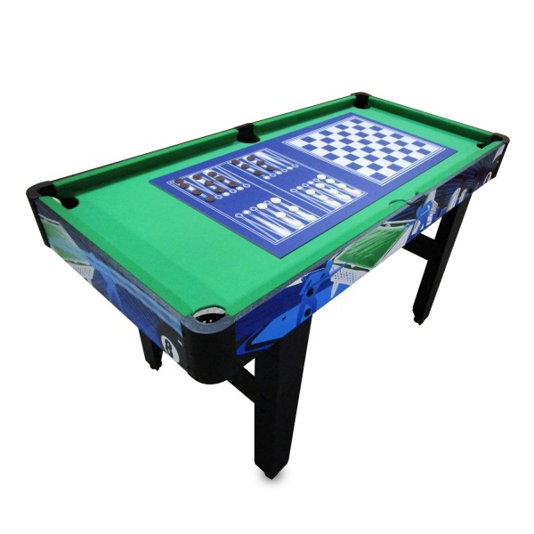 Многофункциональная модель стола трансформер 13 в 1 - бильярд, хоккей, настольный теннис, шахматы, шашки, нарды, боулинг, подковы, кольцеброс, шаффлборд, карты, кости. Для выбора нужной игры необходимо установить новую игровую поверхность поверх основной.