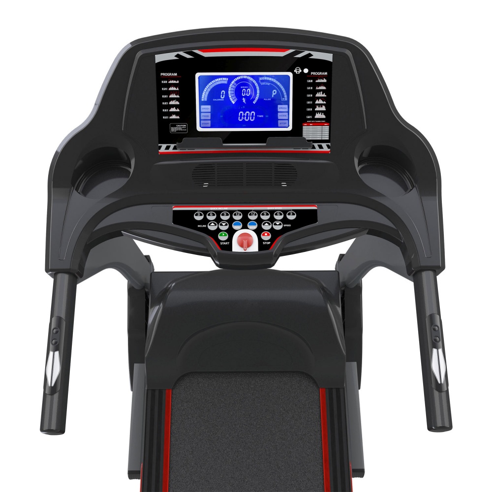 Преимуществом при выборе данной модели тренажера будет наличие мощного двигателя 3.0 л.с. и применение в ней электрического изменения угла наклона бегового полотна. Панель управления с LCD-экраном и 2-мя карманами по краям для размещения бутылки с водой и различных предметов. Кнопки изменения скорости и угла наклона бегового полотна, датчики пульса на поручнях. Вход для MP3-плеера с 2-мя встроенными динамиками.