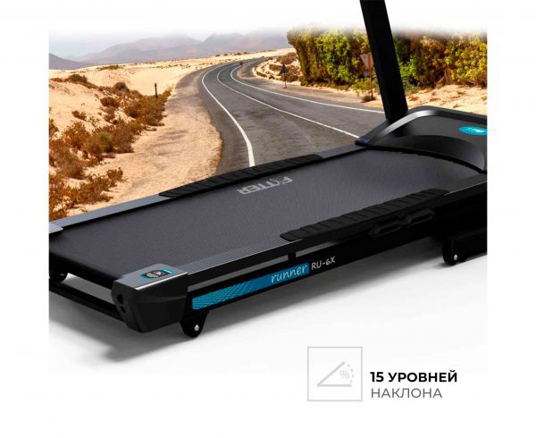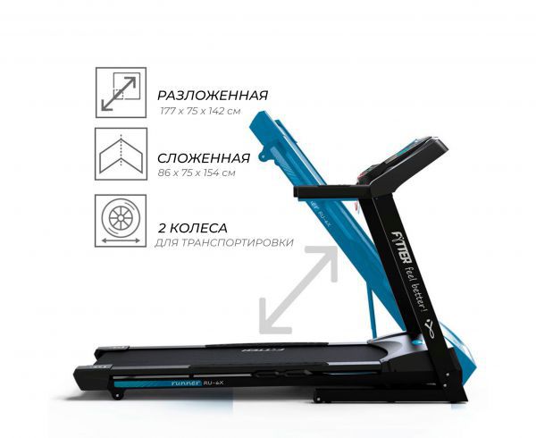 Беговая дорожка имеет складную конструкцию, что позволяет быстро и легко сложить ее для хранения. Гидроцилиндр позволяет сложить Fytter 6X одним движением, а раскладывается он с одного толчка.
