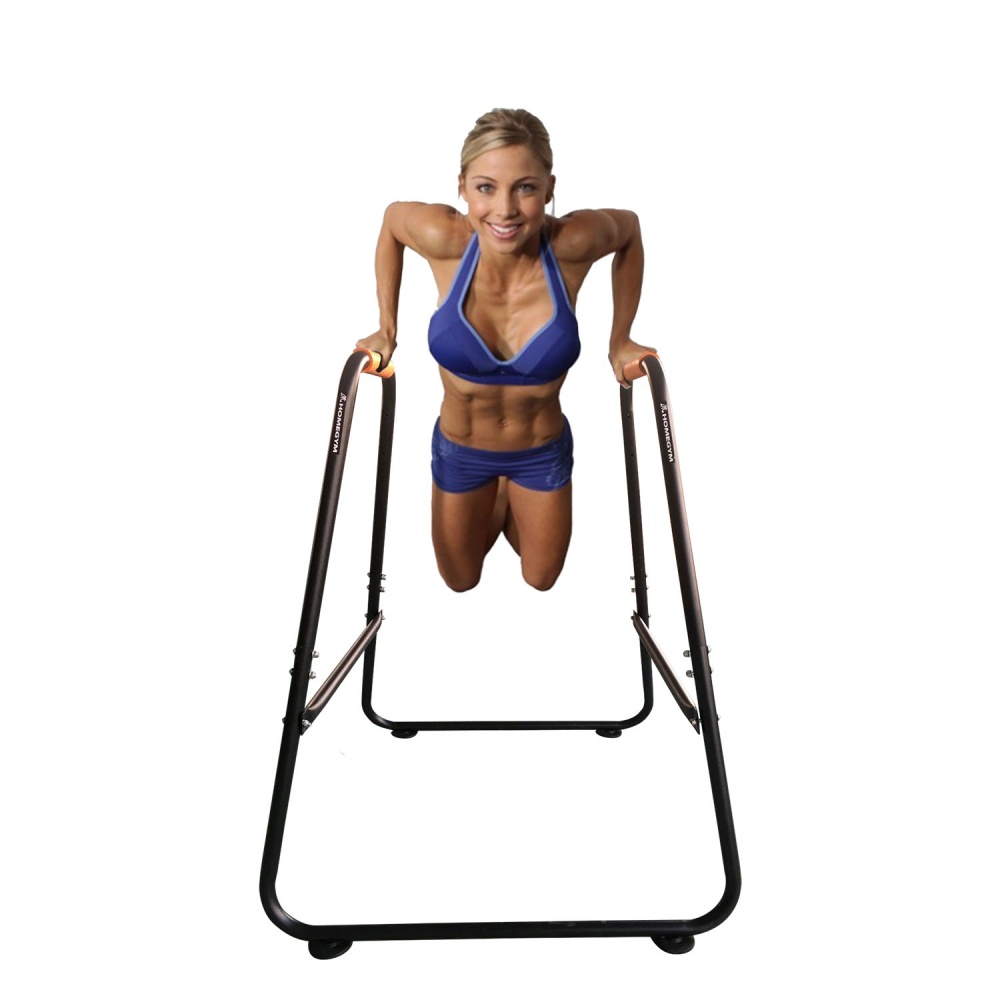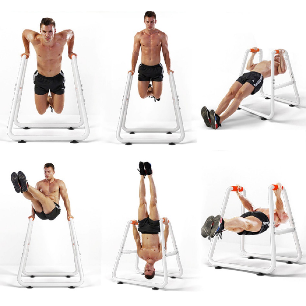 Стойка для отжиманий на брусьях. Предназначена для выполнения различных упражнений на развитие грудных мышц и трицепса, пресса. Различные виды отжиманий, инверсия, шраг на брусьях, различные подтягивания, подъем ног для пресса, уголок.