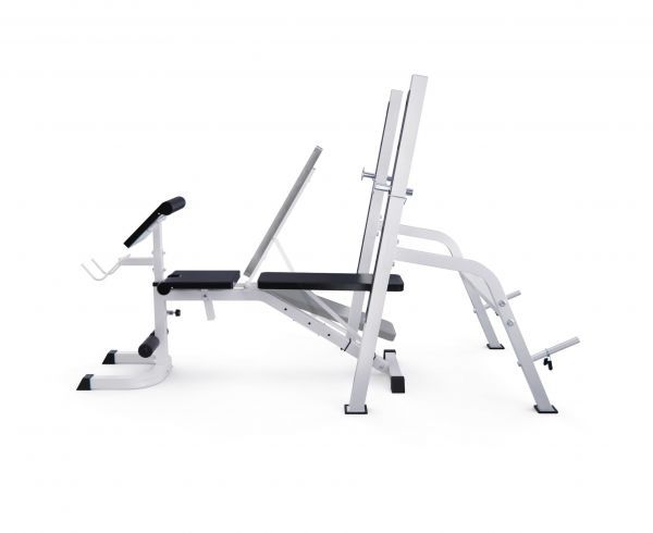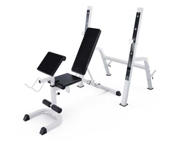 Скамья со стойками под штангу с партой GORILLA белого цвета — это удобный и функциональный тренажёр для домашних тренировок.