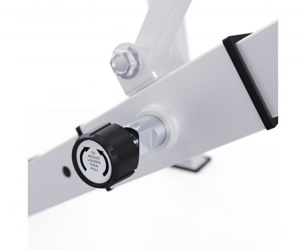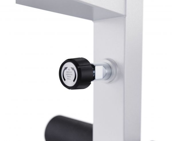 Высота держателей под штангу регулируется на 6 уровней от 46,5 до 138,5 см, что обеспечивает комфорт во время выполнения упражнений и позволяет настроить тренажер под себя.