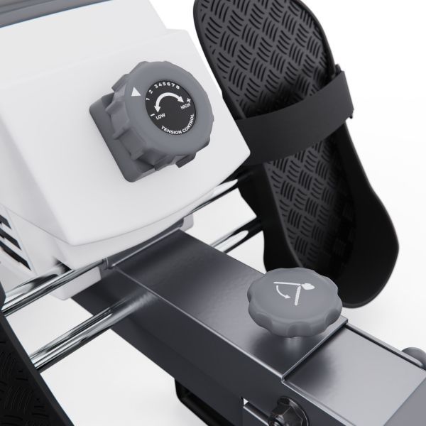 Рифленые педали с регулируемыми ремешками обеспечивают надежную фиксацию ног. Также есть компенсаторы неровности пола, которые гарантируют стабильность тренажера, а транспортировочные ролики обеспечивают лёгкое и удобное перемещение, позволяя без труда менять его расположение в помещении.