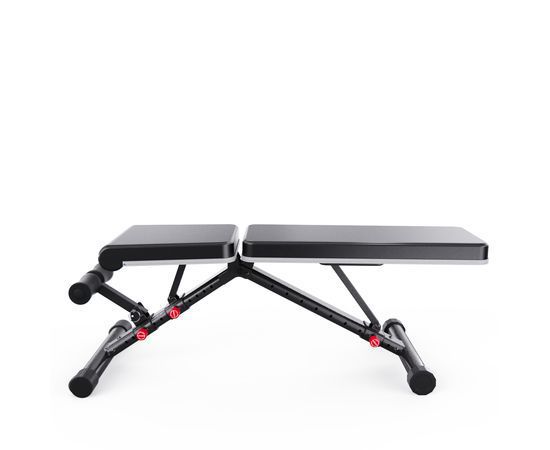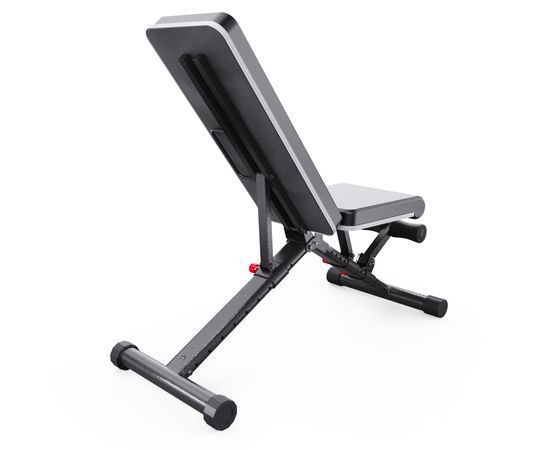 Скамья спортивная имеет 11 уровней регулировки спинки и 7 уровней регулировки сиденья, чтобы быстро преобразовать ее для тренировки в прямое, наклонное и даже отрицательное положение. Высота от сиденья до пола равна 51 см. Валики для ног из мягкого вспененного материала также регулируется в 2-х положениях по наклону и в 4-х положениях по высоте, чтобы занятия проходили максимально комфортно.