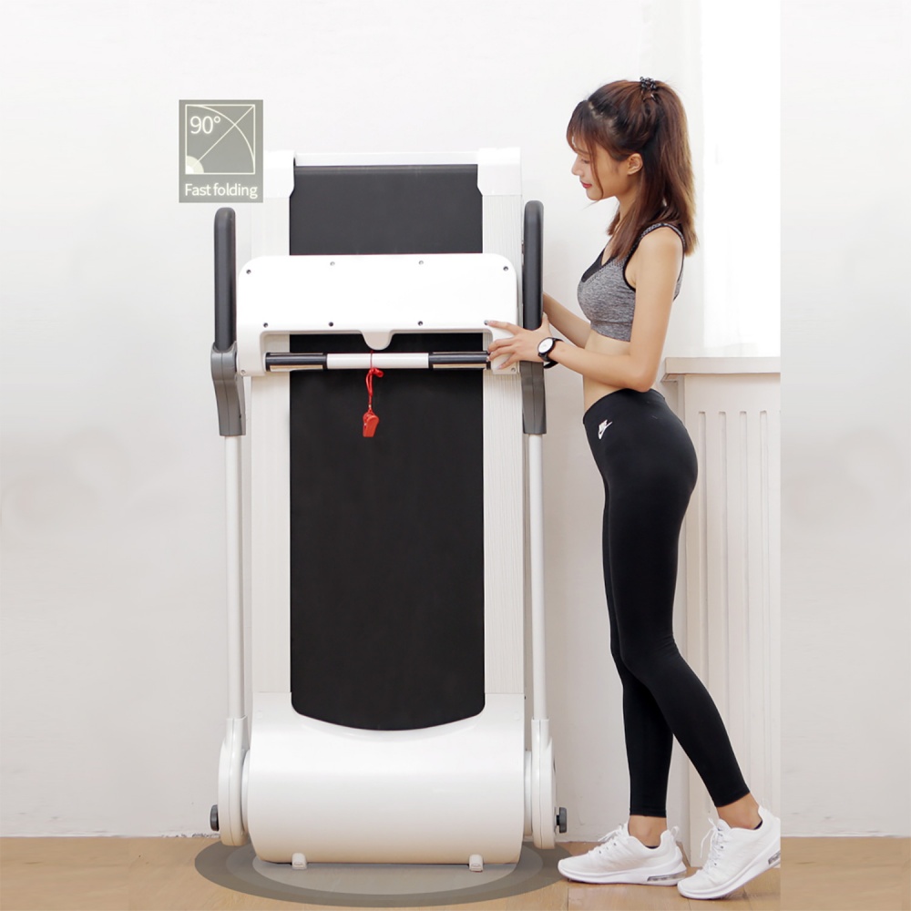 Второй особенностью этой модели является то, что она поставляется в собранном виде. Для сборки вообще не требуется инструмент. Дорожку необходимо просто достать из коробки, привести в рабочее положение и подключить к розетке. И можно сразу приступать к тренировке.