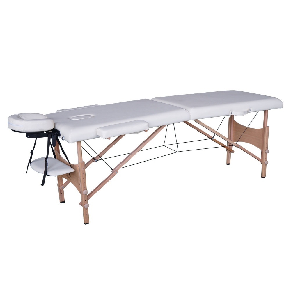 Складной 2-х секционный переносной массажный стол DFC Nirvana Optima Cream. Изготовлен из высококачественных компонентов. Идеально подходит для домашней эксплуатации.