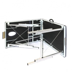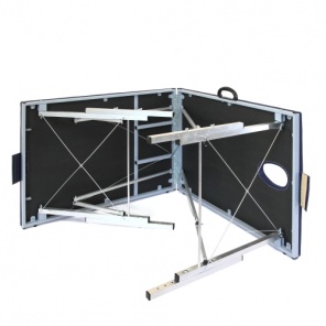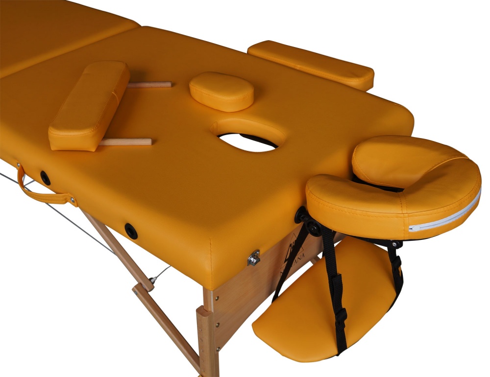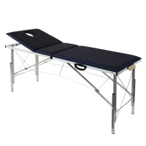 Универсальный трехсекционный массажный стол. Нижняя и верхняя секция регулируются, поэтому модель подходит для всех видов массажа. Конструкцией предусмотрен съемный подголовник и вырез для лица с заглушкой. Ножки стола выполнены из бука и выдерживают высокие статические нагрузки. Модель складная, в собранном виде напоминает большой чемодан. Сам стол весит 13 килограмм, а в комплекте со съемными подлокотниками, сумкой-чехлом и другими дополнительными деталями - 17кг, что несколько снижает мобильность. Набивка у рабочей поверхности поролоновая, обтянута искусственной кожей, которую легко мыть. Стол подойдет как для дома, так и для профессионального использования, в частности - для массажистов, работающих на дому, при наличии у них личного автомобиля.