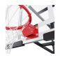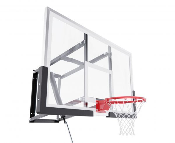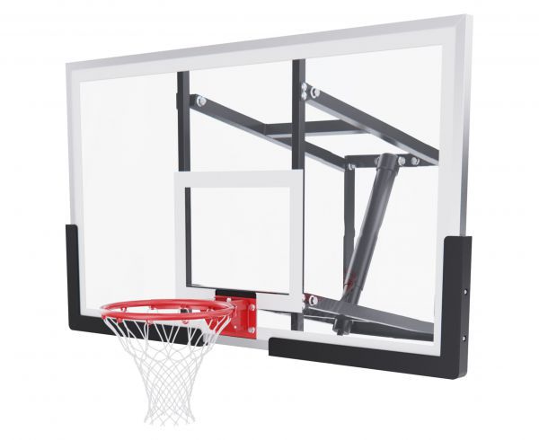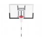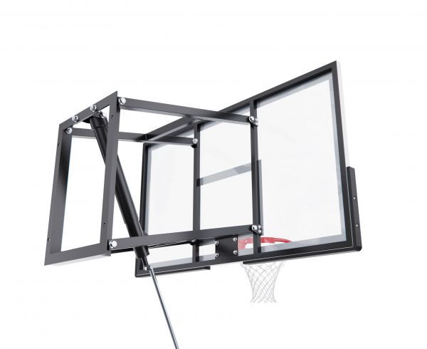 Щит изготовлен из прочного поликарбоната толщиной 3 мм — материала, обеспечивающего хороший отскок мяча и устойчивость к ударам. Его размеры — 136 х 80 см, что делает его максимально приближенным к профессиональному оборудованию. Регулируемый вынос щита (51–55,5 см) повышает безопасность и удобство во время игры. Дополнительную безопасность обеспечивает защита Poly Pade, установленная по нижнему краю щита.