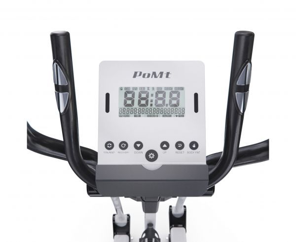 Тренажёр оснащён монохромным LCD-дисплеем, который отображает время, скорость, дистанцию, калории, пульс, восстановление, обороты в минуту, а также предоставляет доступ к 12 программам и пользовательской программе с возможностью настройки. Измерение пульса осуществляется с помощью встроенных сенсорных датчиков на поручнях. Тренажёр также подключается к приложению i-console через Bluetooth, что делает ваши тренировки эффективнее и разнообразнее.