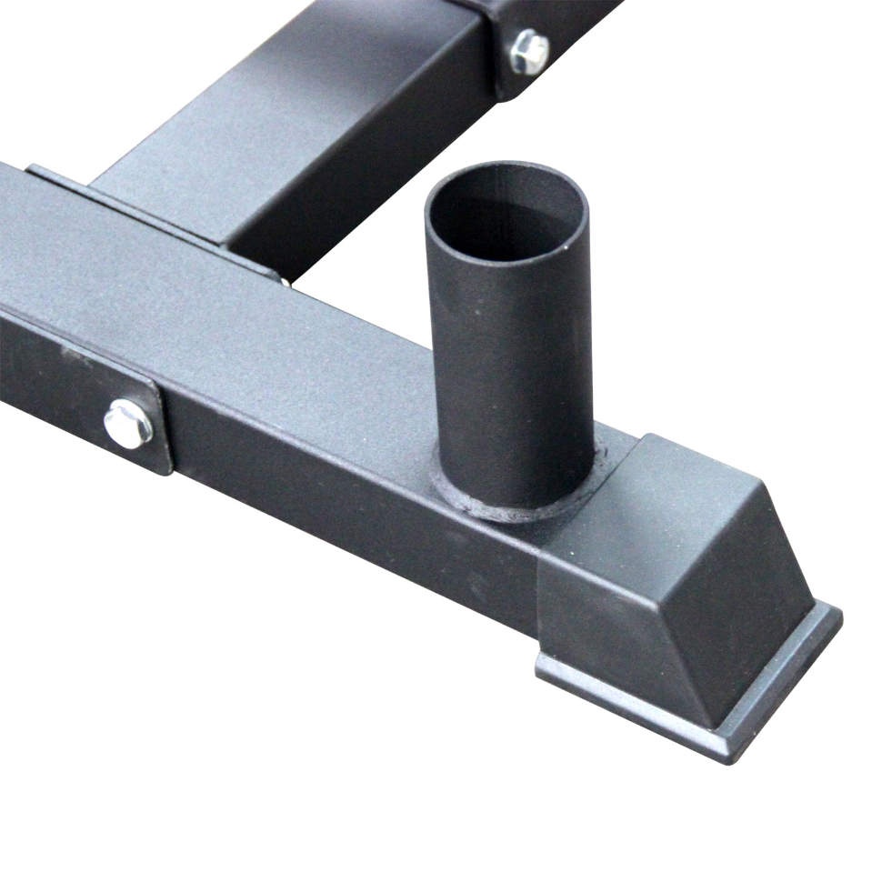 Стойка имеет 6 посадочных мест для хранения дисков диаметром 50 мм. Изготовлена из высококачественного стального профиля.