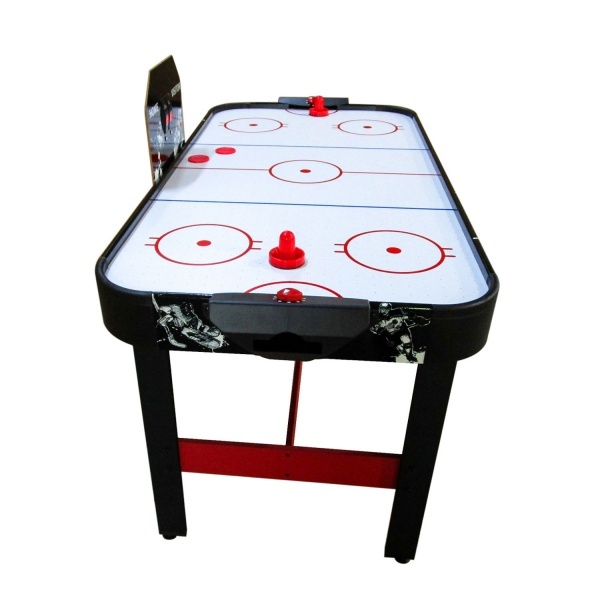 Стол оборудован электронным табло для счета очков и механическим счетчиком для каждого игрока. Корпус выполнен из специально обработанного МДФ, сверху покрытого ПВХ-пленкой. Мощный компрессор подает воздух через отверстия. Усиленная конструкция рамы.