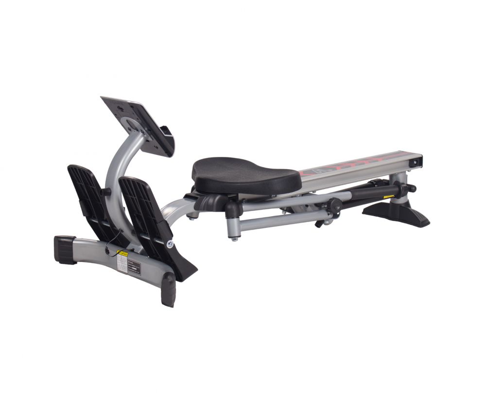 Нагрузка тренажёра создаётся при помощи 2-х гидравлических цилиндров и регулируется с помощью колесика в верхней части каждого цилиндра. Доступно 12 уровней сопротивления, рекомендовано начинать занятия с минимального значения. Дисплей работает от двух батареек типа ААА (не входят в комплект) и отображает следующие параметры - время, количество гребков общее, количество гребков за 1 тренировку и калории. На консоли расположена подставка под планшет.