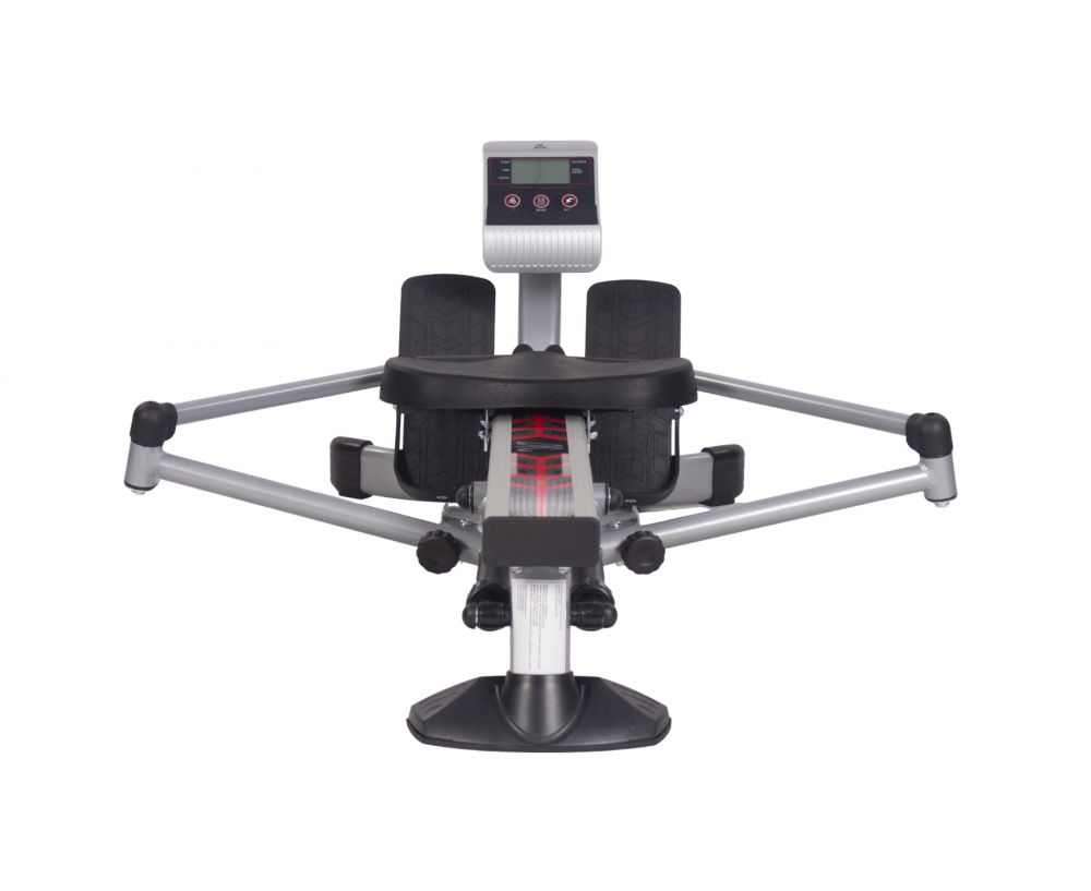 Гребной тренажёр R123A складной, благодаря чему не займёт много места в комнате. Эргономичное сиденье размером 38,5 х 27 см и толщиной 4,7 см, на педалях предусмотрены регулируемые ремешки. Размер педалей - оптимальные 32,5 х 13,4 см, а высота от пола до нижней части составляет 7,6 см. Рукоятки тренажёра имеют диапазон вращения 360°. Эти особенности позволят отрегулировать тренажёр исходя из потребностей пользователя.