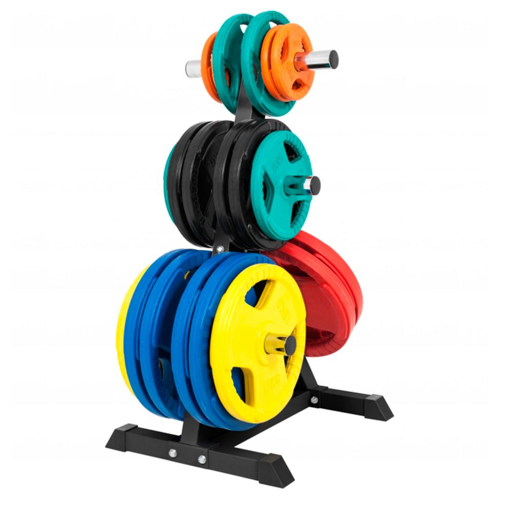 Стойка для хранения дисков выполнена в профессиональном студийном качестве. Позволяет создать благоприятную психологическую атмосферу во время тренировки - все диски идеально отсортированы. Семь посадочных мест (втулок) для хранения дисков с посадочным диаметром 51 мм. Втулки расположены на высоте 32, 45, 70 и 100 см от пола. Резиновые ножки для защиты пола от царапин и устойчивости всей конструкции.