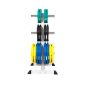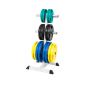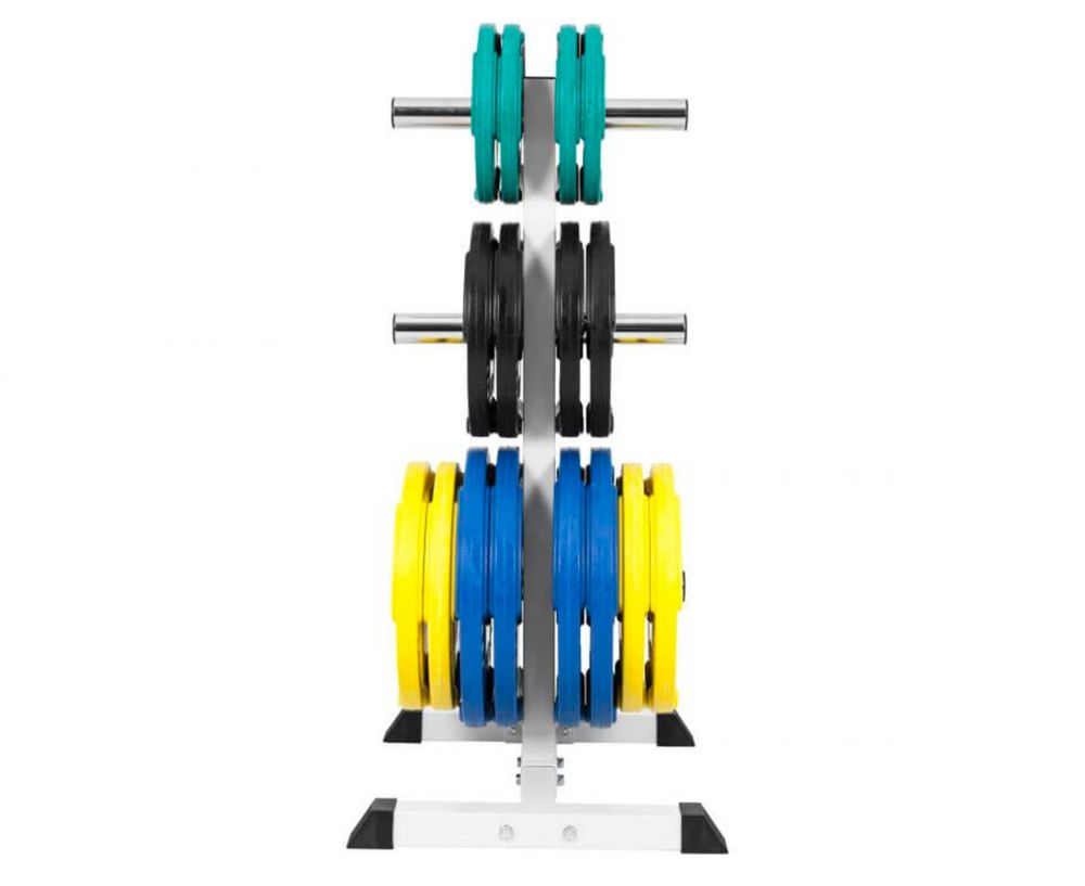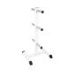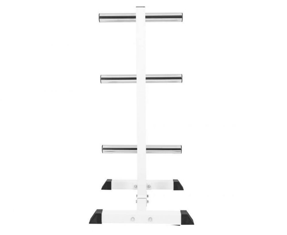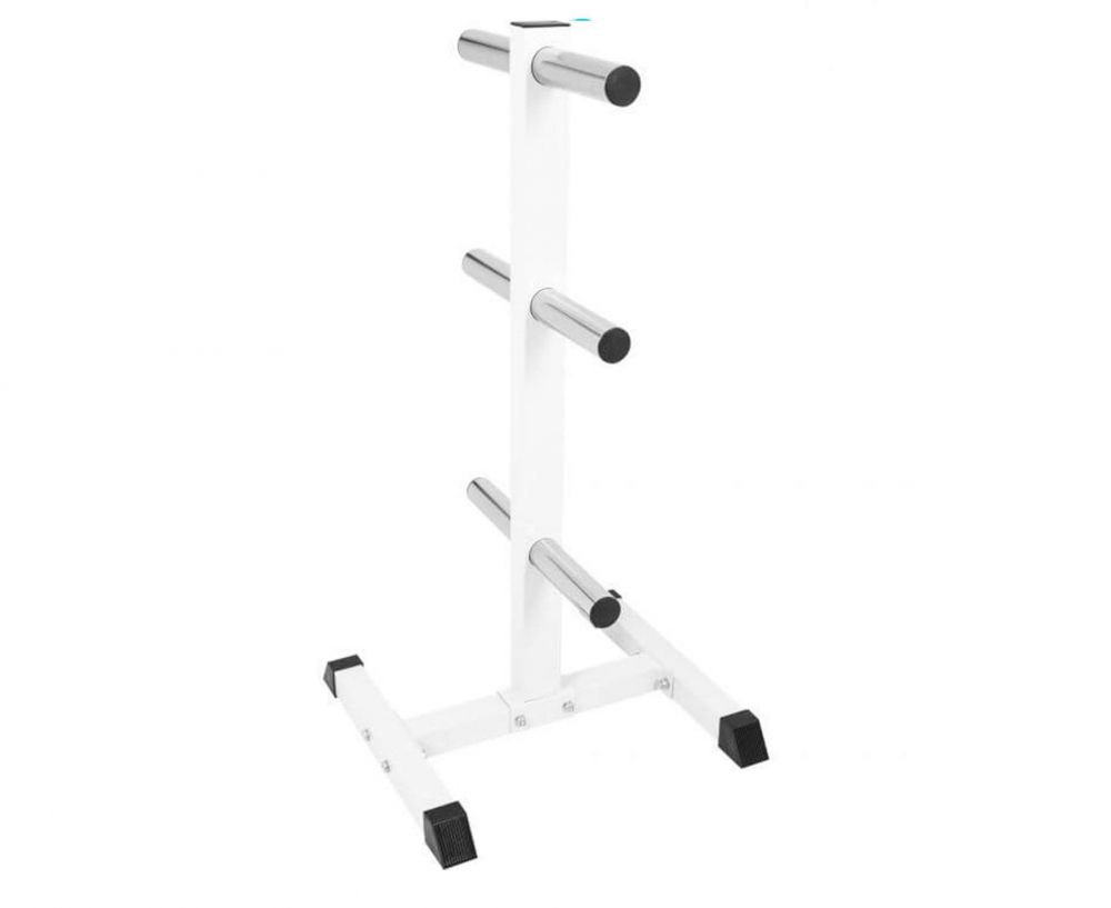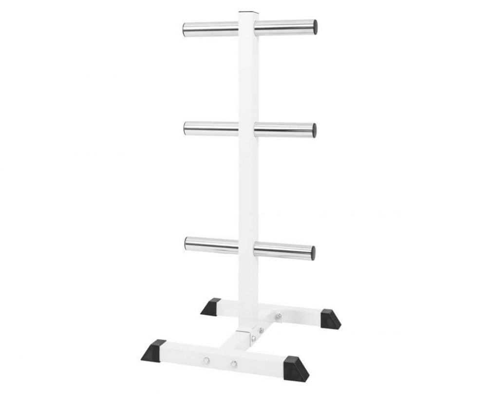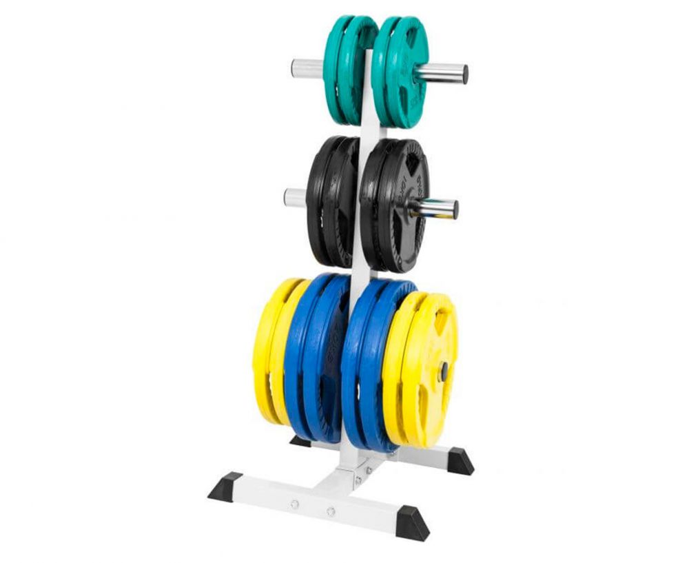 Стойка DFC для хранения дисков с посадочным диаметром 51 мм на 6 посадочных мест (втулок). Длина каждой втулки 20 см. Втулки расположены на высоте 33, 73 и 107 см от пола. Общая нагрузка на стойку не должна превышать 350 кг. Каждая втулка выдерживает не более 60 кг.