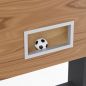 Игровая поверхность выполнена из МДФ с покрытием ПВХ, что обеспечивает стабильность конструкции и износостойкость. Толщина игрового поля — 12 мм, а толщина бортиков — 27 мм, что способствует хорошему контролю мяча и динамичной игре.
