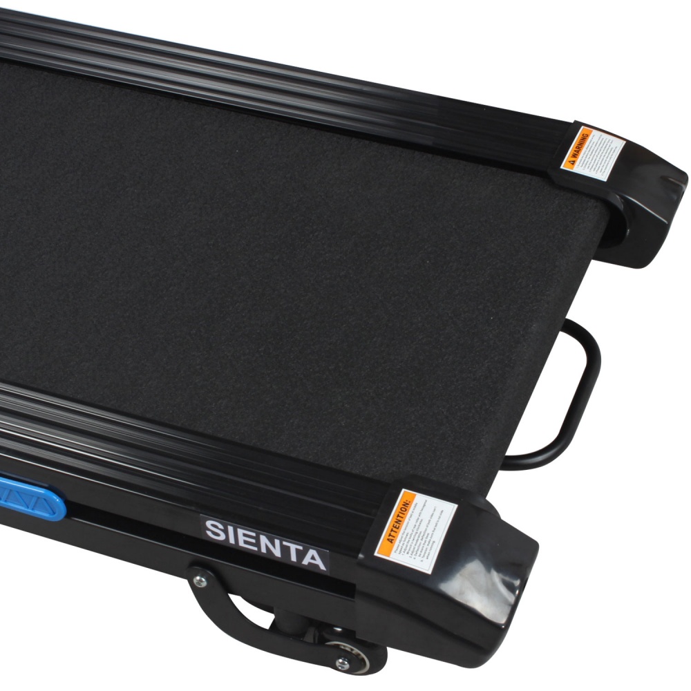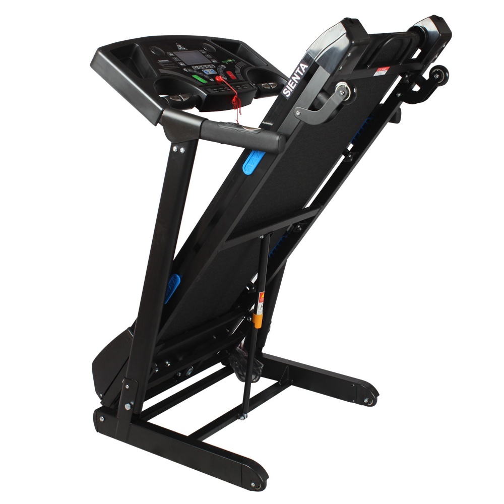 Представляем новую беговую дорожку от популярного бренда DFC - модель SIENTA. В своем арсенале дорожка имеет двигатель постоянного тока мощностью 2.5 л.с. Угол наклона бегового полотна изменяется с помощью дополнительного электромотора. Встроенные динамики звуковой системы и возможность подключения дополнительных устройств через разъемы MP3 и USB помогут провести тренировку под любимую мелодию. Два комплекта встроенных в поручни датчиков позволят следить за частотой сердечных сокращений. Такие датчики имеют определенную погрешность. Для точности показаний рекомендуем приобрести нагрудный пояс с монитором в форме часов DFC W117. На поручнях так же расположены "быстрые кнопки" - это кнопки запуска и остановки бегового полотна, и кнопки изменения скорости. Это позволяет не отрывать руки с поручней во время тренировки.