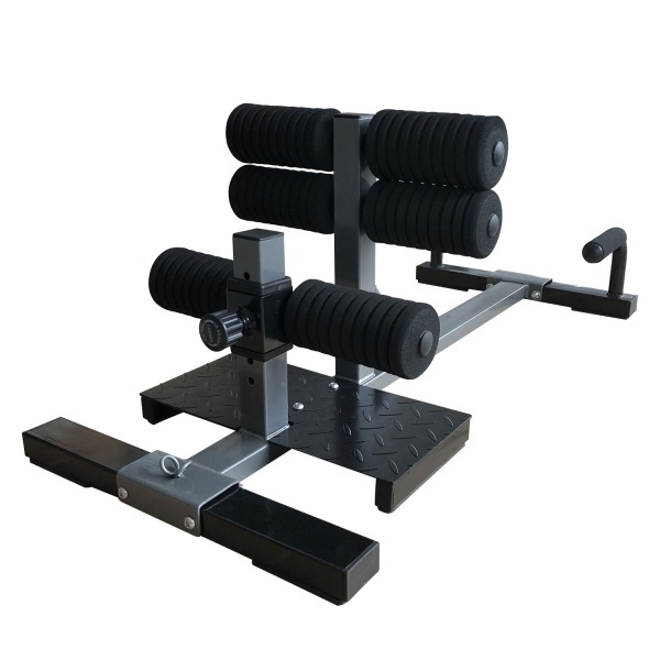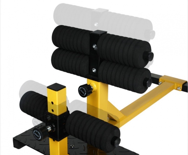 Компактный тренажер Sissy Squat идеально обеспечивает изолированную нагрузку. Стопы нужно зафиксировать под валиками, голени прислонить к подушке и далее делать максимально глубокие приседания, с отягощением либо без него.