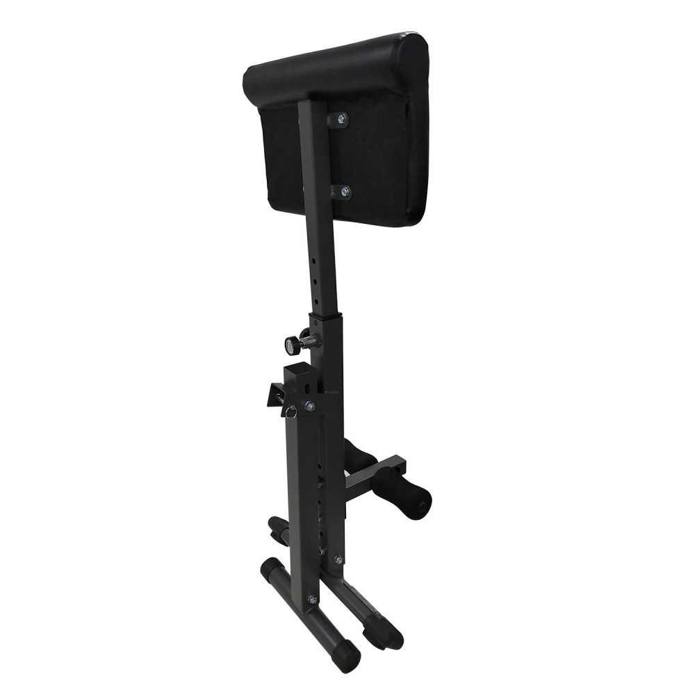 Это универсальная скамья, которая подойдет для тренировки мышц живота, спины и бедер. Валик для ног регулируется 3 положениями, сама рама скамьи прочная и устойчивая.
