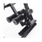 Максимальная нагрузка составляет 135 кг, что позволяет использовать стол людям разной комплекции. Благодаря ограничителю угла наклона в виде перекладины, вы сможете выбрать одно из трёх положений (20, 40 или 60 градусов) или установить стол на 180 градусов, убрав перекладину. Также стол оснащён страховочным ремнём, который обеспечивает безопасность во время выполнения упражнений.