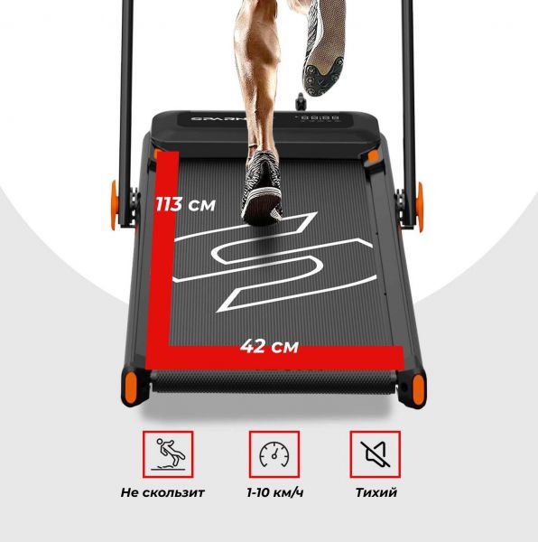 Беговая дорожка DFC SPARNOD T-STH-3070 – идеальный выбор для тех, кто стремится улучшить свою физическую форму, не выходя из дома. Она подойдёт как новичкам, так и тем, кто уже имеет опыт занятий на беговых дорожках. Беговая дорожка рассчитана на пользователей с весом до 110 кг, что делает её универсальной для большинства людей. Беговая дорожка оснащена мощным двигателем с пиковым значением 2,5 л/с, который обеспечивает стабильную работу и хорошую динамику при тренировках. Скорость дорожки регулируется в диапазоне от 1 до 10 км/ч, что позволяет выбрать подходящий темп для любого уровня подготовки. Широкое и комфортное беговое полотно 113 х 42 см обеспечивает естественный шаг и удобство при каждой тренировке. Система с 8 амортизаторами эффективно снижает ударную нагрузку на суставы, обеспечивая комфорт и безопасность во время тренировки, особенно при длительных занятиях. Это особенно важно для пользователей с чувствительными суставами или в период восстановления после травм. На встроенном LCD-дисплее отображаются все важные параметры тренировки: скорость, время, пройденная дистанция и количество сожжённых калорий. Это поможет вам следить за своими результатами и корректировать нагрузку по мере необходимости. Транспортировочные ролики обеспечивают лёгкость и удобство перемещения беговой дорожки по дому, без необходимости прилагать усилия. Благодаря компактным размерам и продуманной конструкции, её легко разместить даже в ограниченном пространстве — после тренировки дорожку можно быстро передвинуть и освободить место. Беговая дорожка DFC SPARNOD T-STH-3070 обладает рядом преимуществ, которые делают её удобной и эффективной для домашних тренировок. А наличие подставки для планшета или телефона позволяет совмещать тренировку с просмотром видео, прослушиванием музыки или онлайн занятиями.