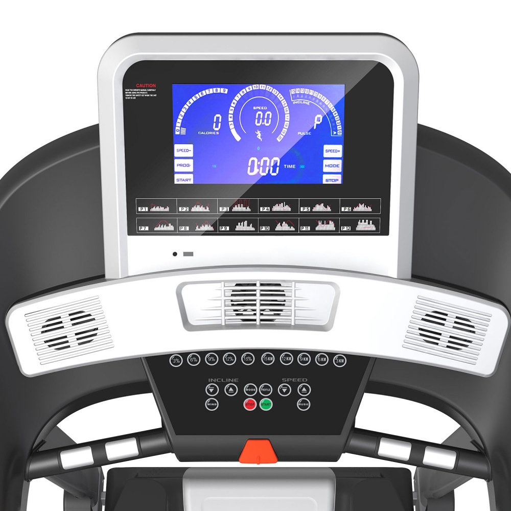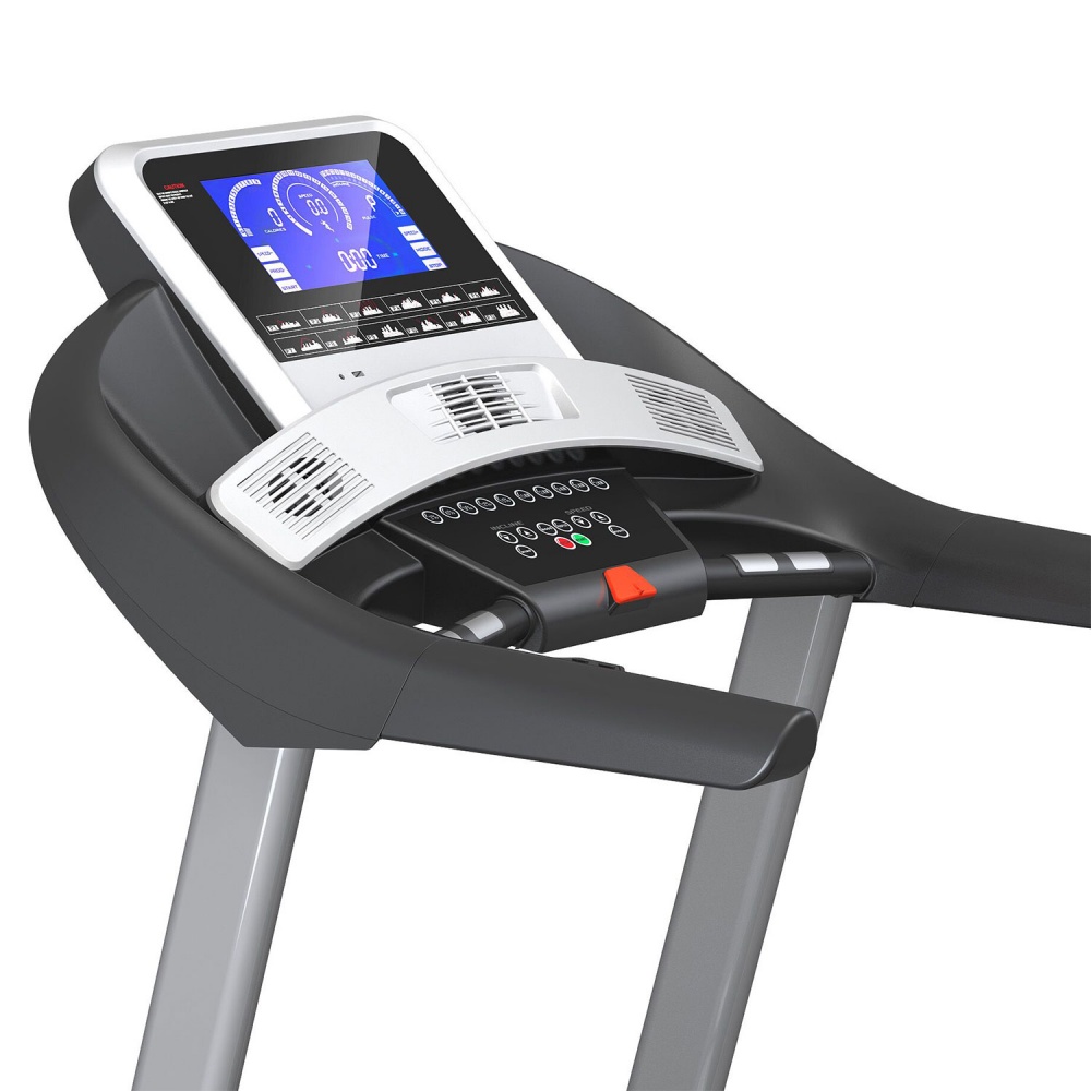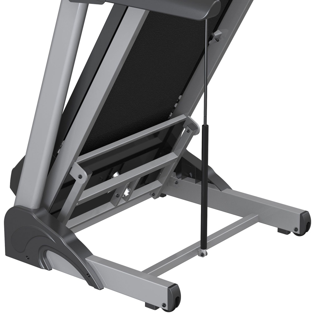Беговое полотно крайне устойчиво к каким-либо физическим повреждениям, а его габариты позволяют пользователю изменять длину шага для комфортного бега. Встроенная система амортизации с 4 полыми цилиндрическими эластомерами, применяемая на коммерческом оборудовании, значительно снижает нагрузку на суставы во время бега.