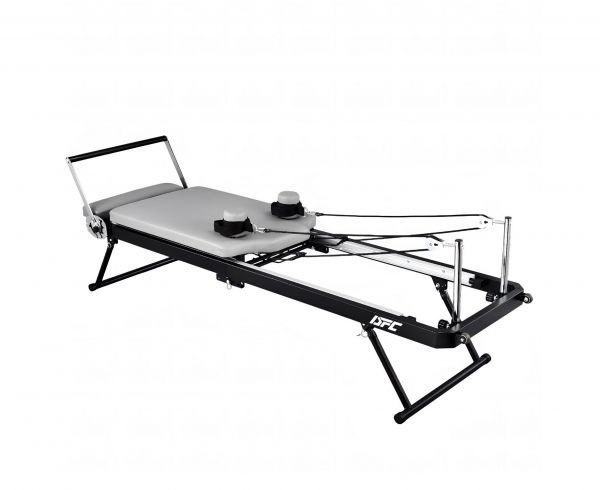 Тренажёр выполнен на прочной и устойчивой стальной раме, обеспечивающей надёжность и стабильность во время тренировок. Конструкция рассчитана на максимальный вес пользователя до 125 кг и подходит для людей с ростом от 150 до 190 см, что делает реформер универсальным решением для домашнего использования всей семьёй.