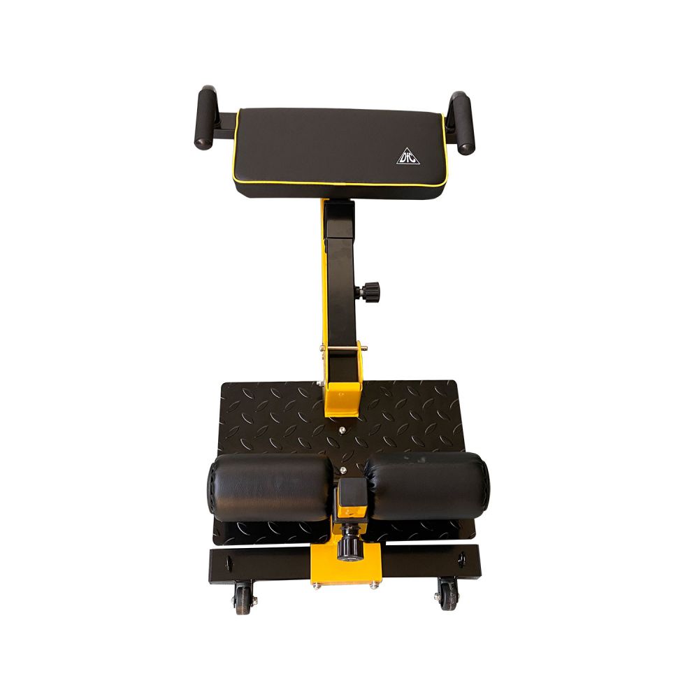 Тренажер для приседаний S035YW идеально подходит для занятий дома или в офисе. При выполнении приседаний наибольшая нагрузка приходится на квадрицепс, а именно на его нижнюю часть. Дополнительно работают икроножные мышцы, ягодицы и задняя поверхность бедра. Стопы нужно зафиксировать под валиками, голени прислонить к подушке и далее делать максимально глубокие приседания, с отягощением либо без него.