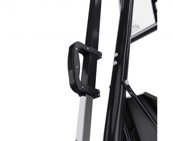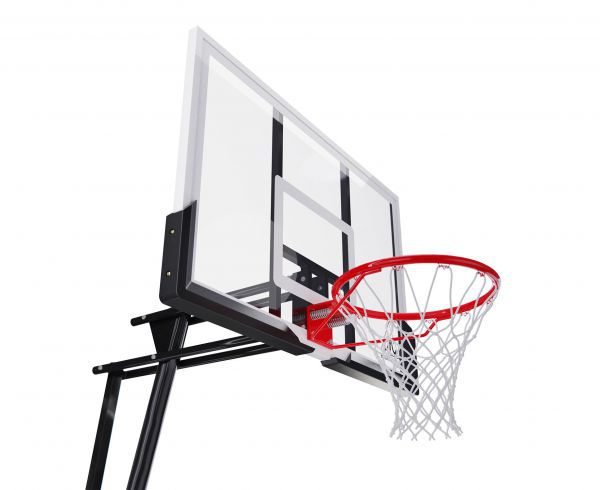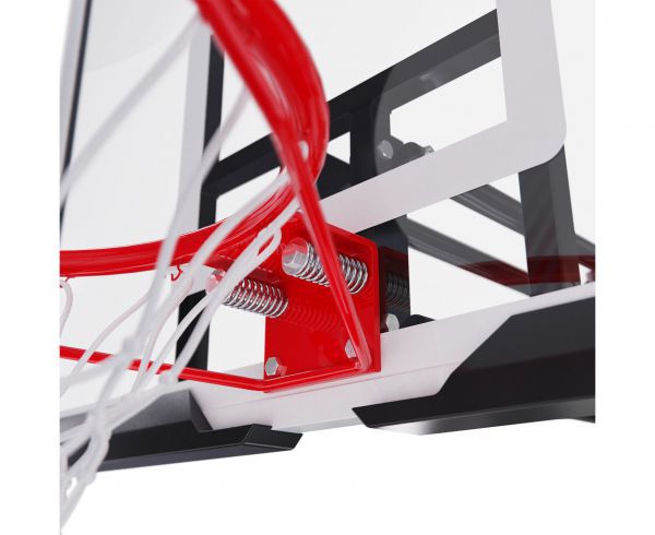 Диаметр кольца составляет 16 мм, а его размер 45 см. Щит размером 108 x 69 см (43 дюйма) изготовлен из поликарбоната. Регулировка по высоте возможна в диапазоне от 150 до 305 см (по кольцу) с помощью ручки.