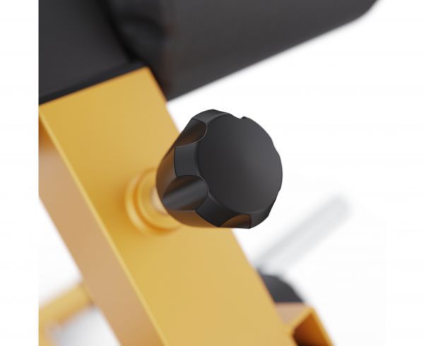 Сиденье размером 32 х 26 см регулируется по высоте в 5 положениях, что позволяет подстроить тренажер под индивидуальные особенности спортсмена. Для фиксации ног предусмотрены удобные валики длиной 21 см и диаметром 11 см, также с 5 уровнями регулировки. Валики изготовлены из плотной пены и покрыты износостойким полиуретаном, что обеспечивает комфорт и долговечность.
