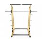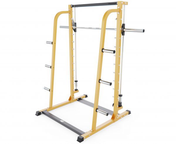 Каркас изготовлен из прочной стали с профилем 70 х 50 х 2 мм, что гарантирует устойчивость и долговечность конструкции. Машина оснащена встроенным грифом длиной 180 см с посадочным диаметром 50 мм и максимальной нагрузкой до 300 кг. Для хранения дисков предусмотрено 6 посадочных мест диаметром 50 мм, каждое из которых выдерживает нагрузку до 150 кг.