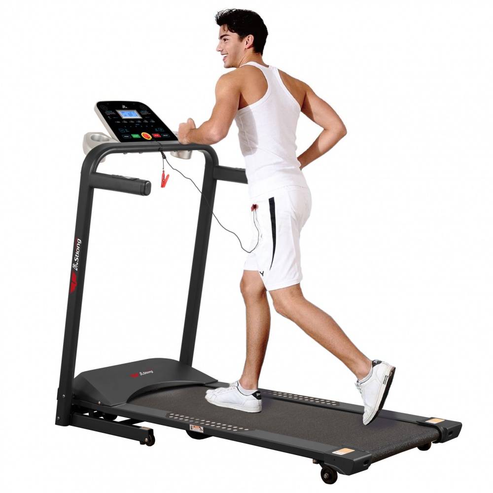 Поддерживать хорошую физическую форму у себя дома можно, используя беговую дорожку DFC Strong C3. Первое, что привлекает внимание – невысокая цена, поэтому покупка такого тренажера доступная для всех желающих. Но функционал тоже не разочарует, ведь в этой беговой дорожке имеется множество программ, режимов и настроек, которые необходимы для эффективных занятий. Еще одним преимуществом данной модели станут компактные размеры, благодаря которым конструкция сэкономит место в комнате. При необходимости беговую дорожку можно складывать для хранения. Рама изделия выполнена из металла и способна выдерживать максимальный вес до 120 кг.