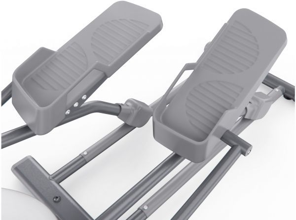 Эллиптический тренажёр DFC Westinghouse WE13M-WH — это мощный и удобный кардио тренажёр, созданный специально для домашнего использования. Он обеспечивает полноценную аэробную нагрузку на все группы мышц без ударной нагрузки на суставы, помогает сжигать калории, развивать выносливость и улучшать сердечно-сосудистую систему. Модель способна выдержать пользователя весом до 120 кг. Тренажёр оснащён магнитной системой нагрузки, которая обеспечивает надёжную и плавную регулировку сопротивления. Механическая регулировка с 8 уровнями нагрузки позволяет легко подобрать оптимальную интенсивность тренировки, а увеличенный инерционный вес маховика 15 кг способствует плавной и стабильной работе тренажёра, создавая комфортные условия для длительных и эффективных тренировок. Нескользящие педали обеспечивают отличное сцепление даже при интенсивных занятиях. Они просторные, устойчивые и предотвращают проскальзывание стоп, обеспечивая дополнительную безопасность. Длина шага составляет 51 см, что позволяет комфортно тренироваться как высоким, так и невысоким пользователям, делая движение естественным и эффективным. Все данные отображаются на LCD-дисплее, где вы можете отслеживать ключевые параметры: сканирование, скорость, темп, время, дистанцию, калории и пульс. Для удобного контроля за состоянием организма во время тренировки на поручнях установлены сенсорные датчики пульса. В комплекте две батарейки типа АА. Для устойчивости тренажёр оснащён компенсаторами неровности пола, благодаря которым он надёжно стоит даже на неидеальной поверхности. Встроенные транспортировочные ролики позволяют легко переместить тренажёр с места на место, что особенно удобно при использовании в ограниченном пространстве. Эллиптический тренажёр DFC Westinghouse WE13M-WH — это оптимальное сочетание надёжности, комфорта и функциональности. Тренажёр продуман до мелочей: есть держатель для бутылки, чтобы вода всегда была под рукой, и держатель для планшета или телефона, позволяющий смотреть видео или слушать музыку во время тренировки.