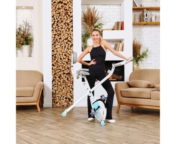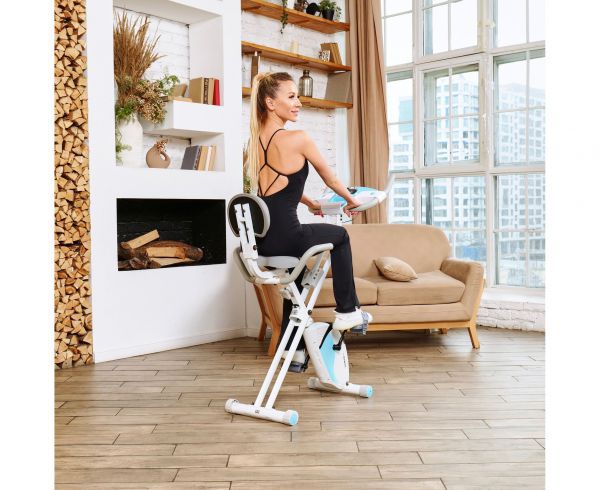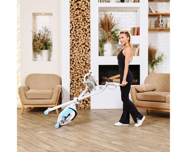 X-Bike LEXPA имеет компактные размеры в сложенном виде — 23 x 40 x 117 сантиметров, что позволяет легко хранить его даже в небольшом помещении. Транспортировочные ролики и компенсаторы неровности пола обеспечивают стабильность и безопасность во время занятий.