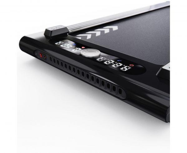 Беговая дорожка LA1001 YMCLUB чёрного цвета — идеальный выбор для тех, кто ценит комфорт и эффективность тренировок. Благодаря отсутствию поручней и максимальной компактности, она легко поместится даже в небольшом пространстве. Пульт управления работает от 1 батарейки CR2025 (не входит в комплект).
