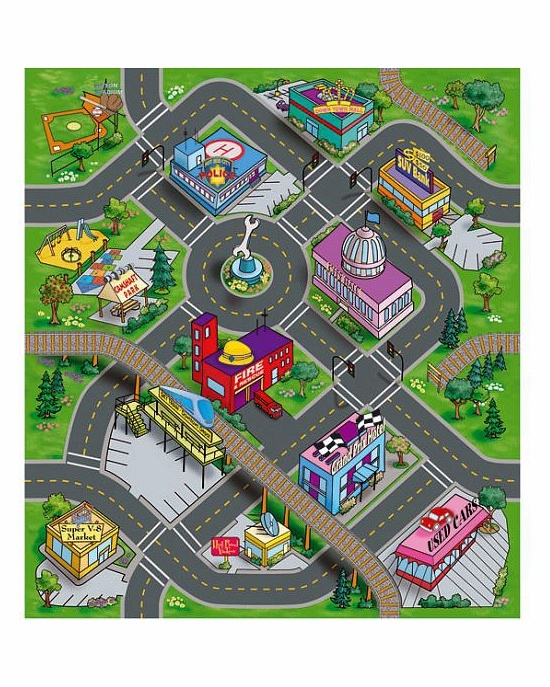 Красочный игровой коврик дарит малышам много сюжетов для новых увлекательных игр. На поверхности ковриков всей серии изображены автомобильные дороги, идущие через мегаполис, пригород, участки гоночной трассы или строительные площадки, ведут загород, пролегают через пустынные участки или приводят в аэропорт. На коврике можно играть прямо на полу в компании друзей или одному, используя весь свой автопарк или машинку в комплекте. Используя коврик можно помочь ребёнку выучить правила безопасного вождения и дорожного движения.