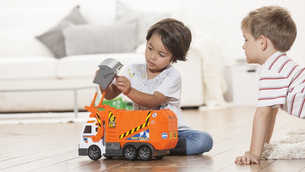 Чтобы погрузка мусора в эту игрушку выглядела более реалистичной, производители предусмотрели специальный подъемный механизм для контейнера, который также представлен в комплекте. Поэтому теперь дети смогут убрать накопившиеся фантики от конфет или другие мелочи внутрь яркого мусоровоза.