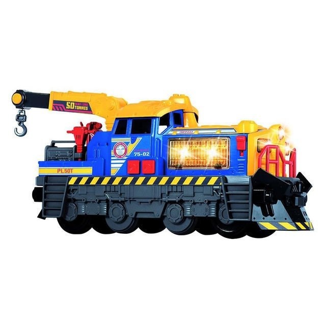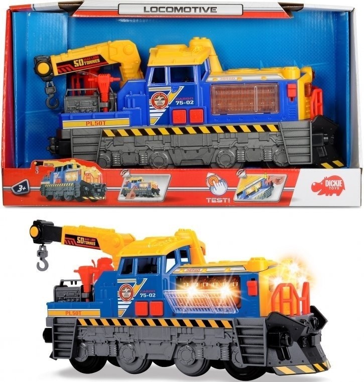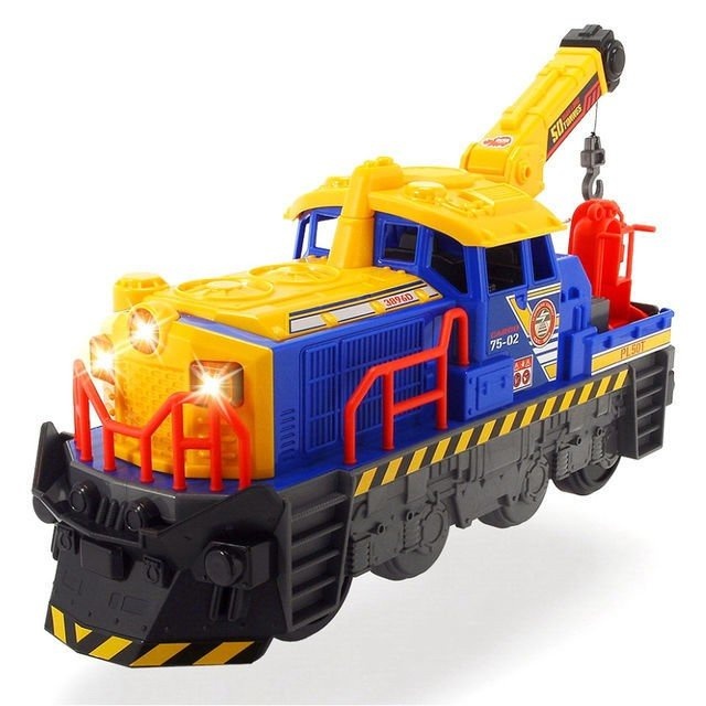 Локомотив с подвижным краном и с открывающейся крышей для размещения фигурки человека в середине. Выполнен с высокой степенью детализации, в модели воспроизведены все мельчайшие детали настоящего поезда-тягача. Игрушка дополнена звуковыми и световыми эффектами, а также подвижным краном. Окошки открываются, а крышка снимается. Работает на двух батарейках типа AA (входят в комплект).
