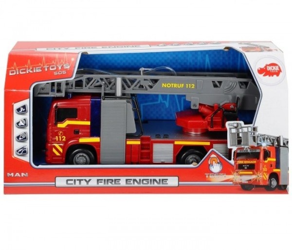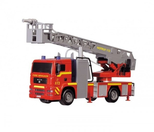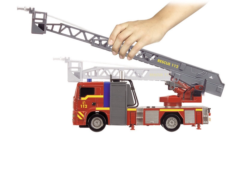 Очень интересная машина пожарных спасателей с функцией распыления воды вызовет восторг у любого ребенка! Лестница команды спасателей крутится в разные стороны, вытягивается вверх и из брандспойта брызгает струя воды, подаваемая с помощью помпы. В машине предусмотрено звуковое сопровождение и включающиеся проблесковые маячки и фары. Машину можно фиксировать на месте с помощью специальных опор.