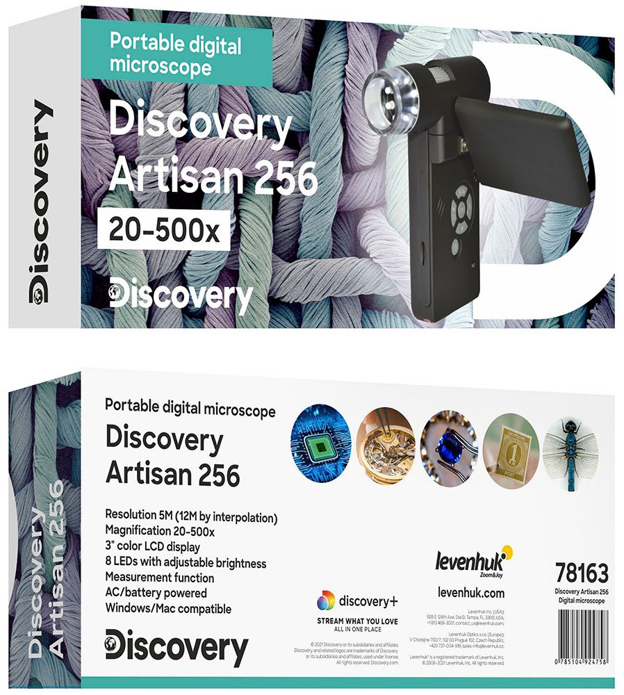 Портативный цифровой микроскоп Discovery Artisan 256 станет настоящей находкой для тех, кому требуется рабочий инструмент для использования на выезде (вне офиса, лаборатории или мастерской). Это небольшой увеличительный прибор с ЖК-экраном и встроенным аккумулятором, что делает его очень мобильным. К тому же микроскоп можно подключать к компьютеру (на базе Windows или Mac OS) или телевизору (через AV-разъем). Также он позволяет фотографировать, записывать видео и проводить линейные и угловые измерения, в том числе определять площади и радиусы. Микроскоп станет верным помощником нумизмату, мастеру сервисного центра, ювелиру, реставратору и многим другим профессионалам, работающим в разных областях.