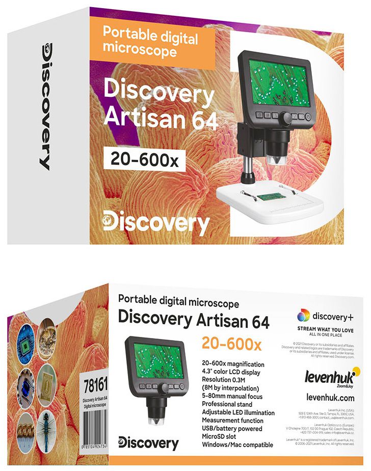 У микроскопа Discovery Artisan 64 есть встроенный ЖК-экран, на котором в режиме реального времени можно наблюдать картинку с объектива.