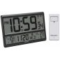 Передняя панель – это два монохромных экрана. Верхний более большой и полностью отведен под часы. Индикация очень крупная и четкая, цифры легко увидеть даже с большого расстояния. Нижний экран поменьше. Центральная его часть отведена под календарь, слева и справа расположены измерения термометра и гигрометра внутри и снаружи помещения. Кнопки управления вынесены на заднюю крышку.