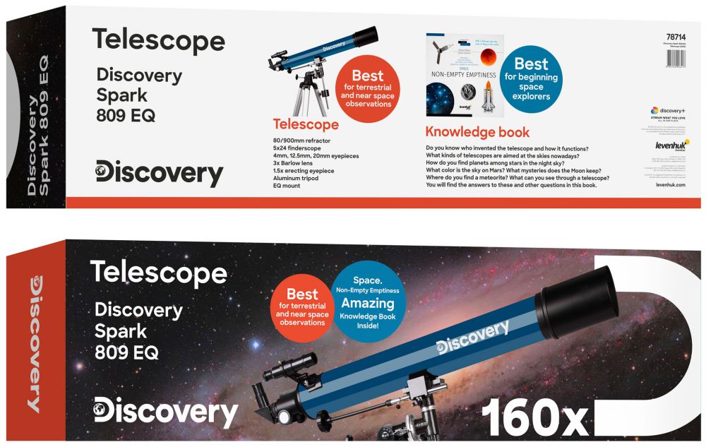 Телескоп Discovery Spark 809 EQ с книгой понравится и начинающим, и более опытным в астронаблюдениях пользователям. Он представляет собой длиннофокусный рефрактор с ахроматической оптикой и позволяет в деталях изучать Луну, рассматривать планеты, наблюдать за многими объектами дальнего космоса. Днем телескоп тоже не будет стоять без дела, в него можно наблюдать наземные объекты, как в подзорную трубу с мощным увеличением.