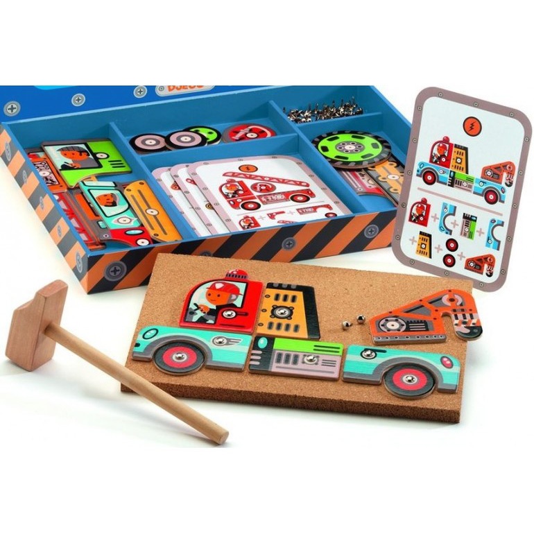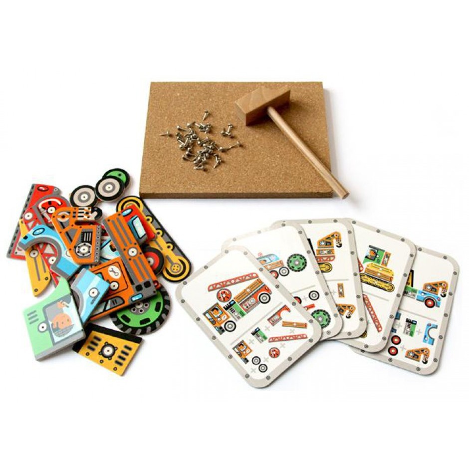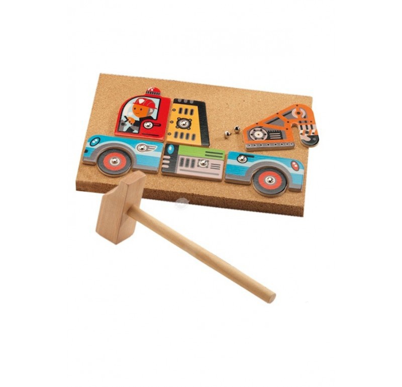 С помощью конструктора "Автомастерская" можно собрать различные модели машинок своими руками, следуя инструкциям. В наборе имеется пробковая доска, на которой и собираются машинки, деревянные детали авто, молоток, карточки с инструкциями по сборке моделей, 40 безопасных гвоздиков. Играя с таким конструктором ребенок развивает фантазию и воображение, моторику и логику.