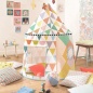 Шатер выполнен из плотного хлопка ярких цветов. В шатре сделана дверь из той же ткани, что и основное покрытие шатра. Дверь можно завернуть наверх и закрепить липучками. Также в шатре сделано 2 окошка с прозрачными гибкими вставками. Внутри достаточно света за счет окошек и покрывающей ткани светлых тонов. Шатер можно использовать на улице в теплую сухую погоду. Если почва влажная, не ставьте шатер на землю. Для очистки можно протереть шатер влажной тканью. Малыши будут с удовольствием играть в шатре, придумывая увлекательные сюжеты, мечтать о приключениях, играть с игрушками или друзьями. Шатер от Djeco добавит в детскую комнату ярких красок и хорошего настроения.