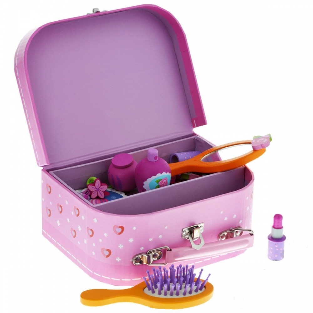 Набор «Косметика» в красивом чемоданчике-косметичке – станет желанным подарком для каждой девочки. Элементы набора выполнены в виде копий взрослых аксессуаров, которые стоят у мамы на туалетном столике. Теперь в распоряжении маленькой леди будет все необходимое для создания красивого образа. Маленькая модница придумает много сюжетов для увлекательной ролевой игры.