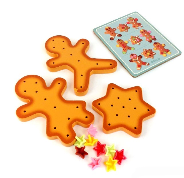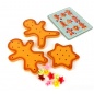 В комплект входят формы печенек в виде человечков и звездочек с отверстиями, более 60 ярких деталей для украшения в виде бусинок, цветочков, улыбочек, с помощью которых человечки будут выглядеть неповторимо, а также картинка с заданиями и подсказками по украшению изделий. Следуя ей, ребенок сможет научиться украшать со вкусом, а также придумать свой оригинальный дизайн.